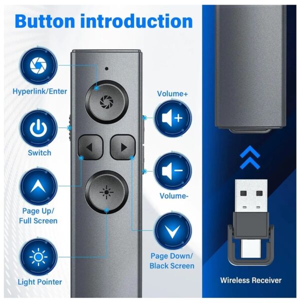 Лазерна безжична показалка за презентации и лекции 1Tech Lg-12, Кликер, 2 в 1, дистанционно за проектори.