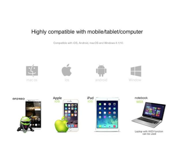 Приемникът е съвместим с широка гама от устойства, поддържа устройства с операционна система iOS 7, Android 4.2, Windows 8.1 и 10, Mac OSX (напр. iPhone, iPad etc.).
