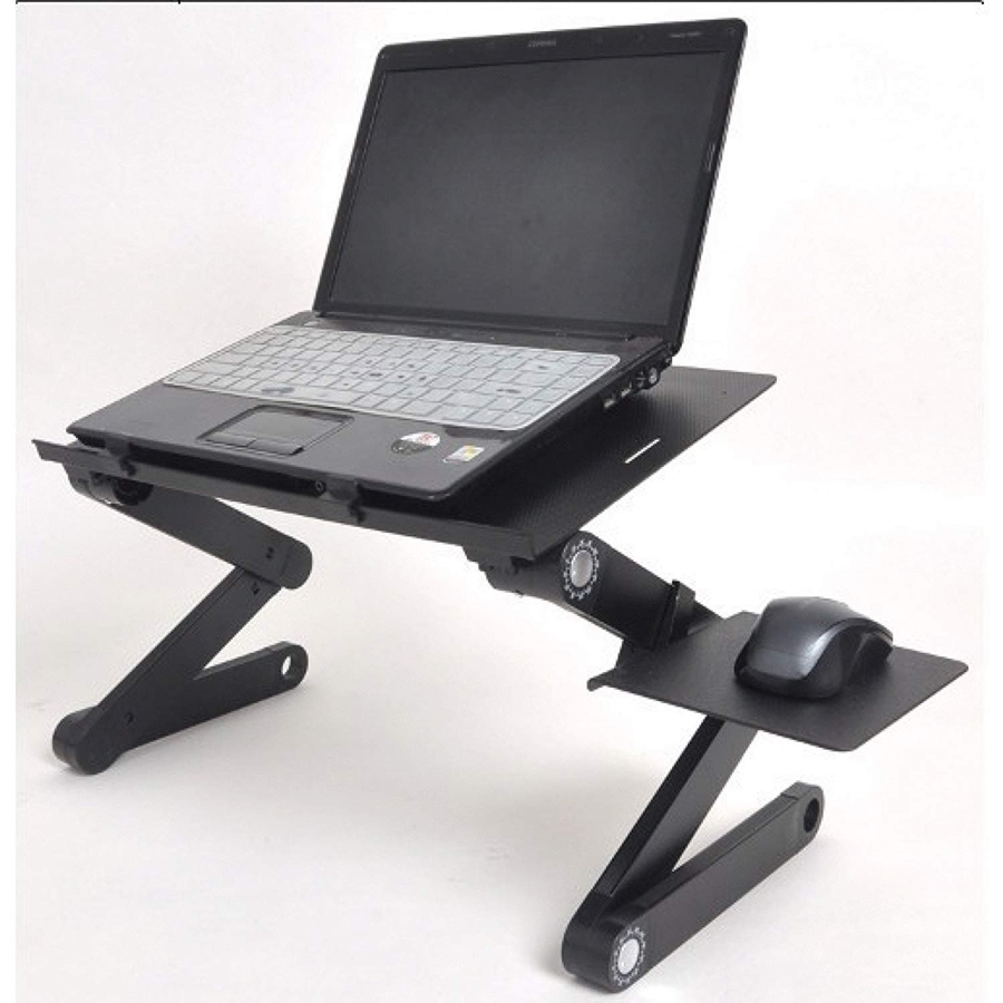 Алуминиева сгъваема голяма маса за лаптоп SIAPRO, за лаптоп с голям охладител, 11 позиции, Черна