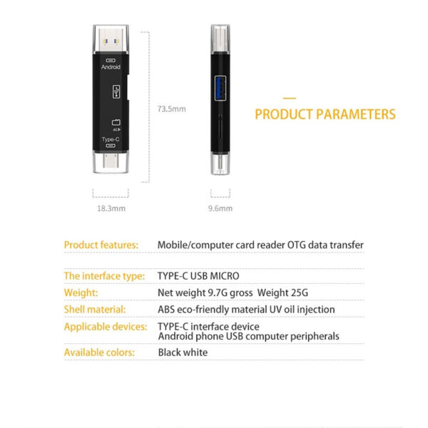 5 in 1 Multifunction Usb 2.0 Type C/Usb /Micro Usb/Tf/SD Memory Card Reader OTG Card Reader Adapter Mobile Phone Accessories.